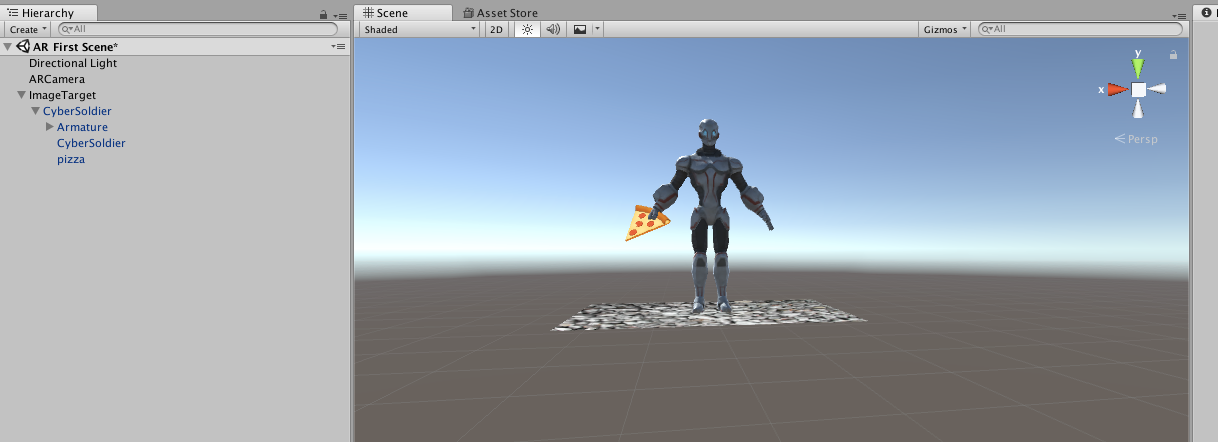 You should now see your Cyber Soldier standing on some rocks. You could be an overachiever like me and your Cyber Soldier is also holding a pizza slice. Because, why not?